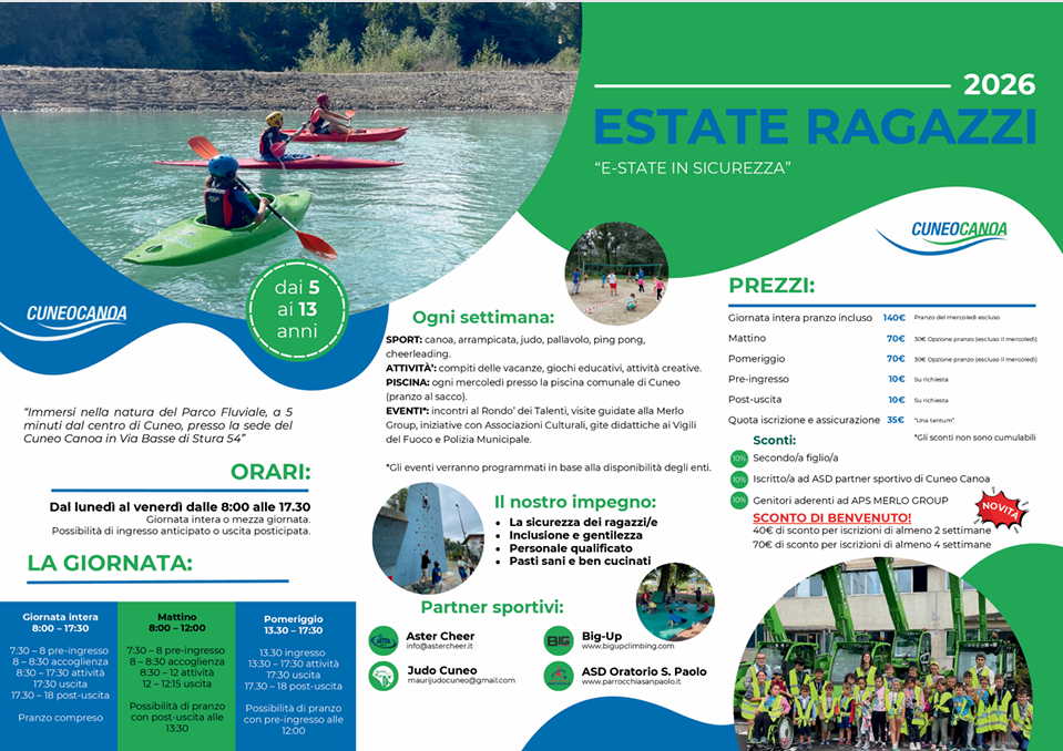 Il Cuneo Canoa è molto sensibile alla collaborazione con le scuole di ogni ordine e grado. Proponiamo l’educazione allo sport e la bellezza di andare per fiumi…